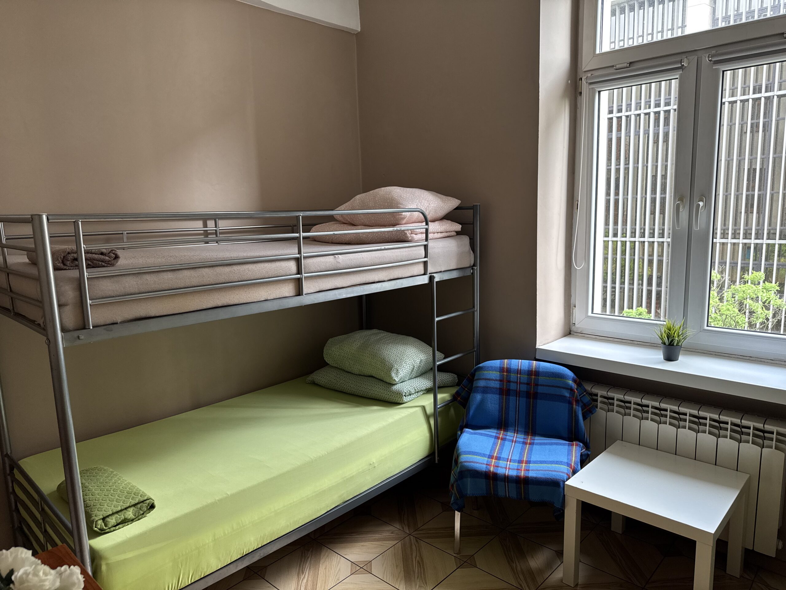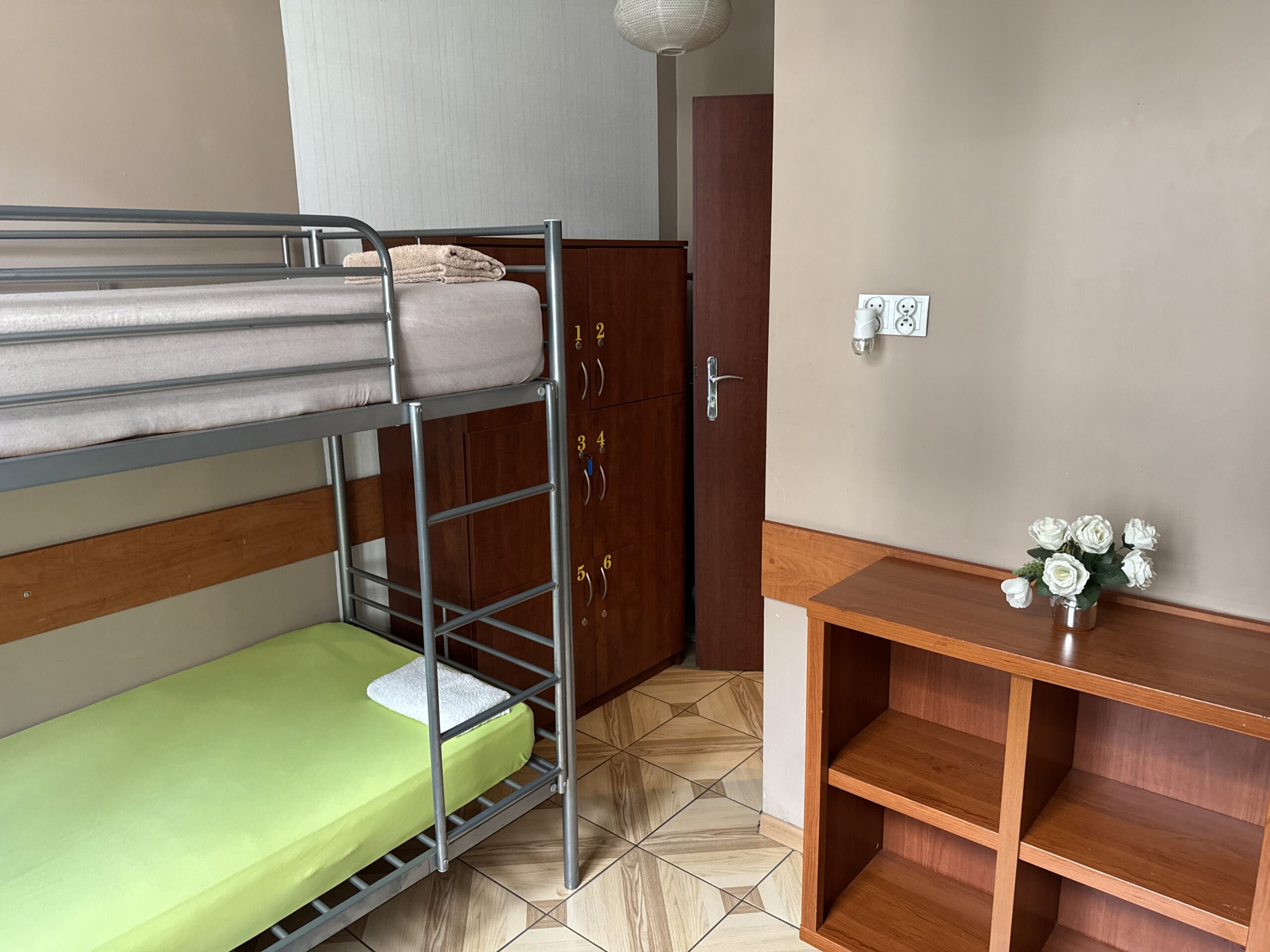 Pokój koedukacyjny z dwoma piętrowymi łóżkami to komfortowe i ekonomiczne rozwiązanie dla osób podróżujących solo lub w grupie. Wnętrze jest przytulne i funkcjonalne, a mieszkańcy mają dostęp do wspólnej, w pełni wyposażonej kuchni, idealnej do przygotowywania posiłków. Na terenie obiektu dostępny jest także bezpłatny parking. To wygodne miejsce na krótki pobyt w przyjaznej atmosferze.