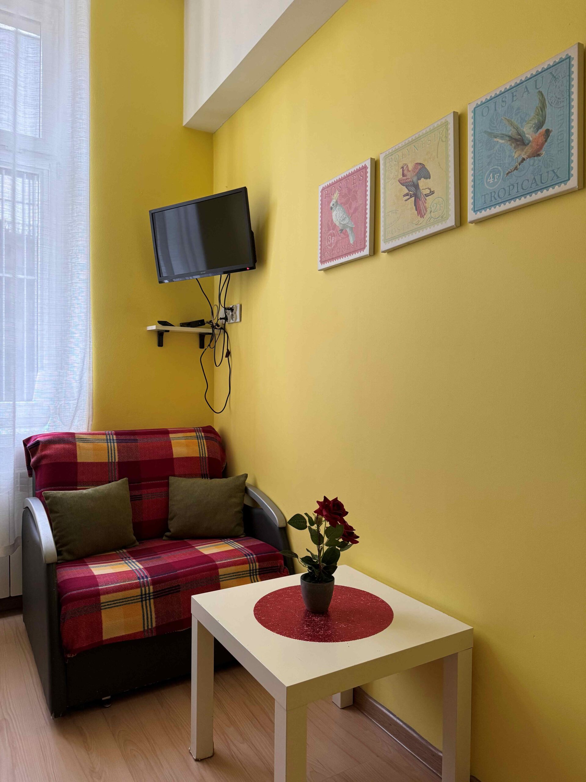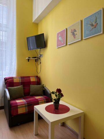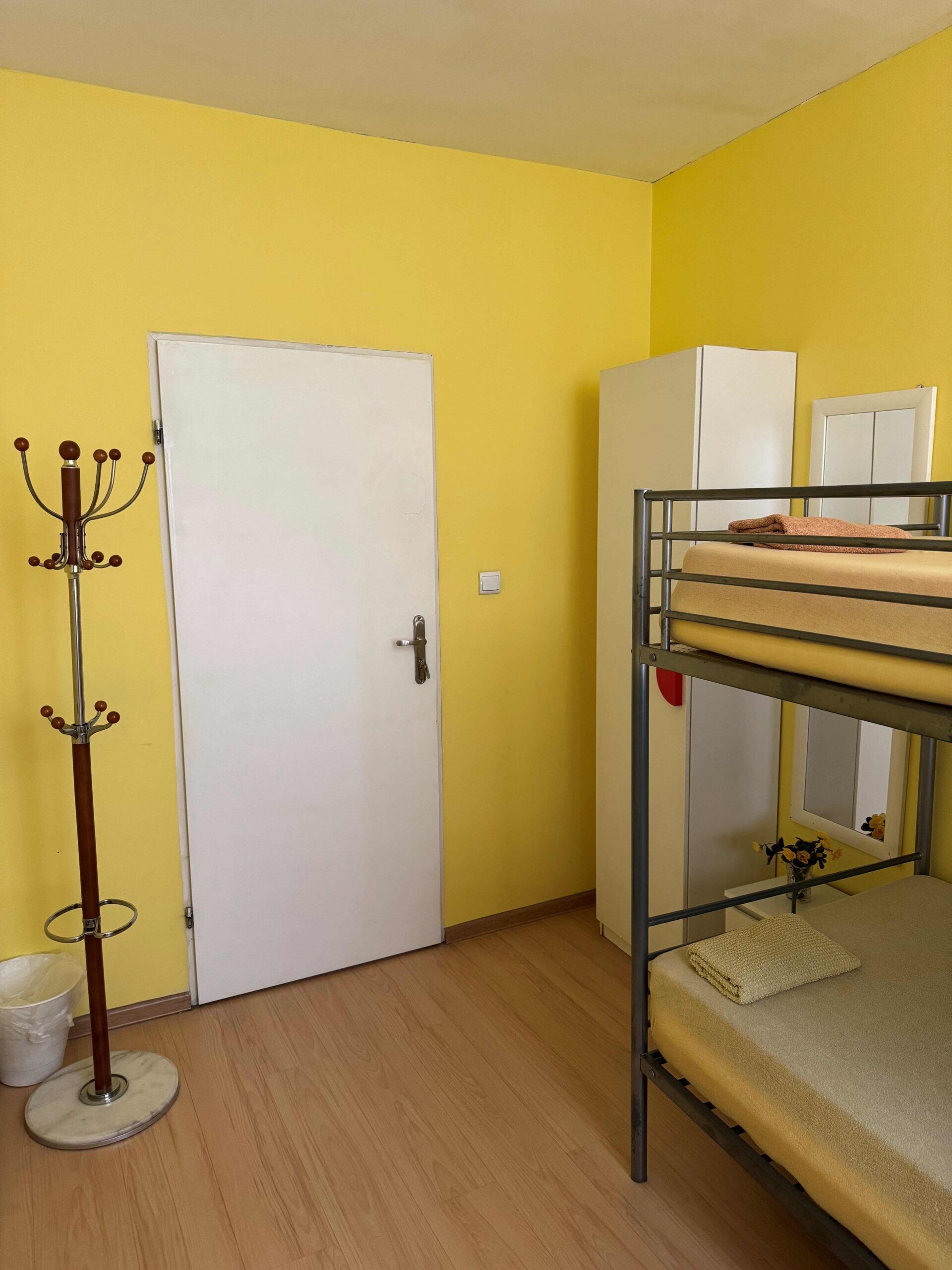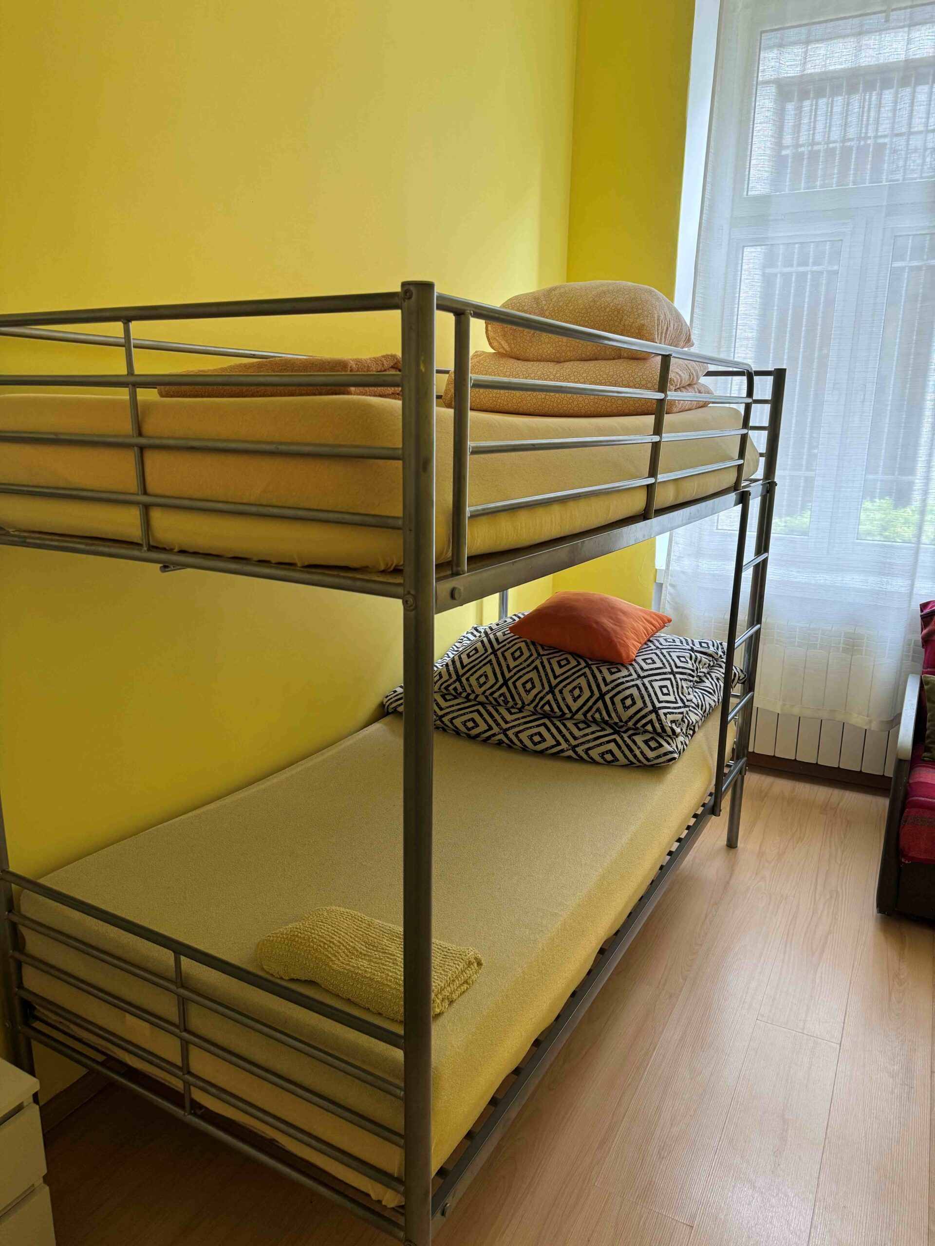 Funkcjonalny pokój dwuosobowy łóżkiem piętrowym i dostawką wyposażony jest w telewizor, ogrzewanie oraz elegancką podłogę z parkietu. Do dyspozycji gości jest szafa na ubrania i czajnik elektryczny. Pokój korzysta ze wspólnej łazienki z prysznicem i suszarką do włosów. Wspólna kuchnia, dostępna dla wszystkich gości, oferuje pełne wyposażenie, w tym lodówkę, mikrofalówkę i toster.